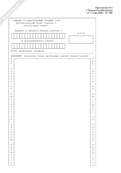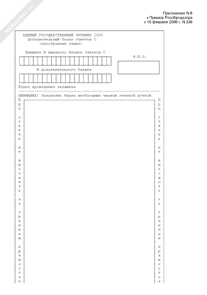 - 187Дополнительный бланк ответов «С» участника единого государственного экзамена по иностранным языкам