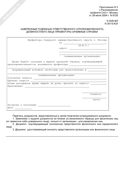 - 200Заверенные подписью ответственного (уполномоченного) должностного лица префектуры архивные справки