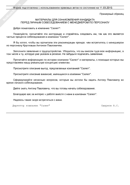 - 403Материалы для ознакомления кандидата на вакантную должность перед личным собеседованием с менеджером по персоналу