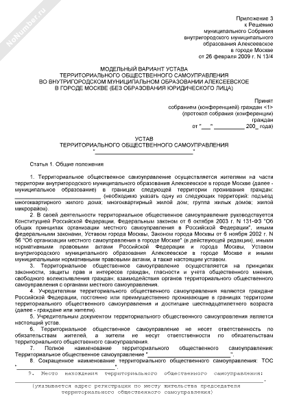 - 427Модельный вариант устава территориального общественного самоуправления во внутригородском муниципальном образовании Алексеевское в городе Москве (без образования юридического лица)