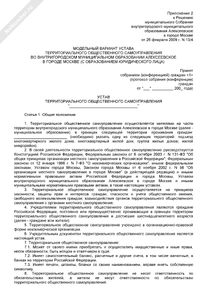- 426Модельный вариант устава территориального общественного самоуправления во внутригородском муниципальном образовании Алексеевское в городе Москве (с образованием юридического лица)