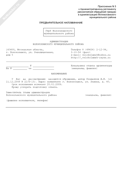 - 432Напоминание администрации Волоколамского муниципального района Московской области о сроках исполнения обращения гражданина