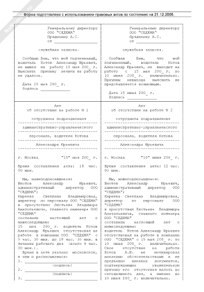 - 601Пакет документов, который формируется в случае прогула сотрудника организации