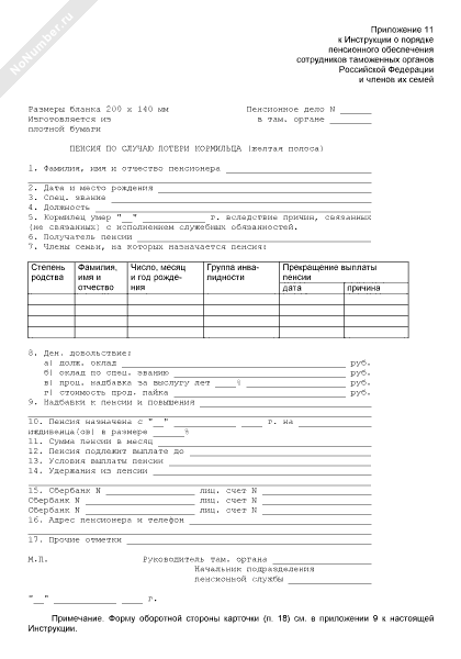 - 611Пенсия по случаю потери кормильца (желтая полоса)