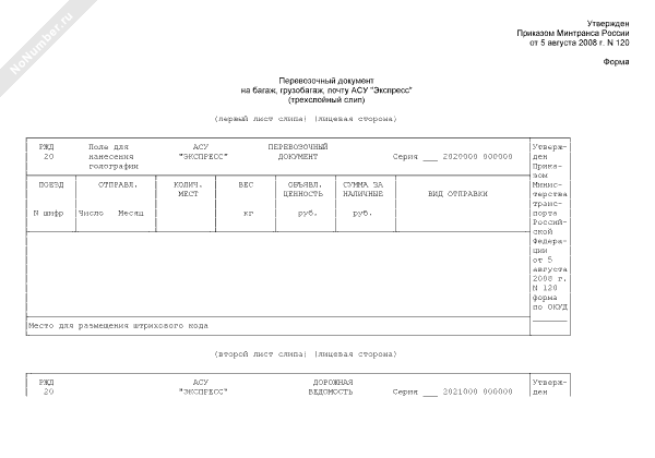 - 613Перевозочный документ на багаж, грузобагаж, почту АСУ «Экспресс» (трехслойный слип)