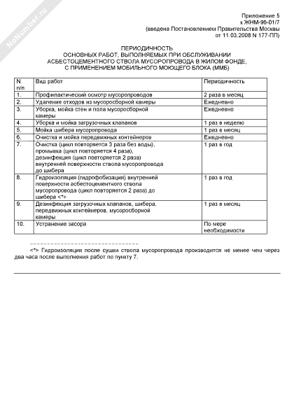 - 619Периодичность основных работ, выполняемых при обслуживании асбестоцементного ствола мусоропровода в жилом фонде, с применением мобильного моющего блока (ММБ)
