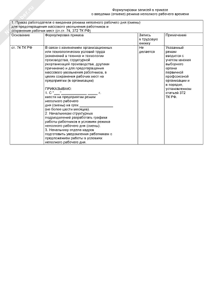 - 783Примерные формулировки записей в приказе и трудовой книжке о введении (отмене) режима неполного рабочего времени