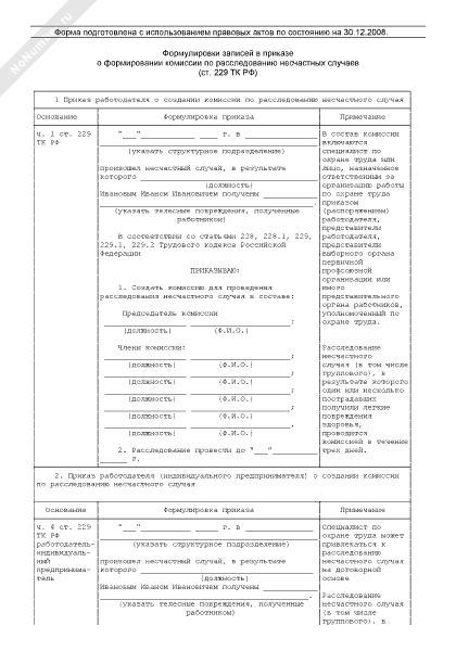 - 785Примерные формулировки записей в приказе о формировании комиссии по расследованию несчастных случаев (ст. 229 ТК РФ)