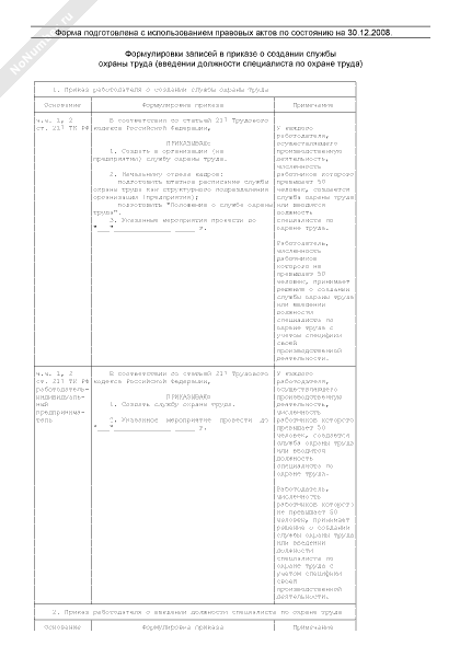 - 786Примерные формулировки записей в приказе о создании службы охраны труда (введении должности специалиста по охране труда)