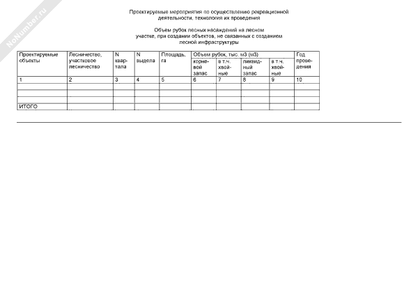 - 883Проектируемые мероприятия по осуществлению рекреационной деятельности, технология их проведения. Объем рубок лесных насаждений на лесном участке, при создании объектов, не связанных с созданием лесной инфраструктуры
