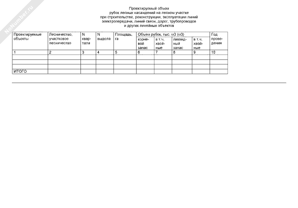 - 888Проектируемый объем рубок лесных насаждений на лесном участке при строительстве, реконструкции, эксплуатации линий электропередачи, линий связи, дорог, трубопроводов и других линейных объектов