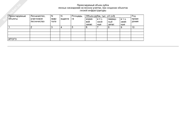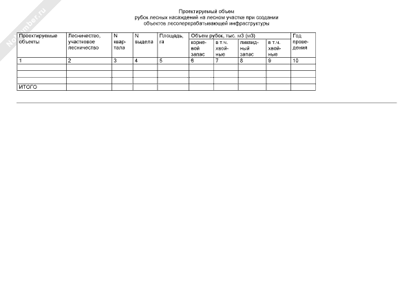 - 890Проектируемый объем рубок лесных насаждений на лесном участке, при создании объектов лесной инфраструктуры