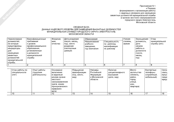 - 999Сводная база данных кадрового резерва для замещения вакантных должностей муниципальной службы городского округа Электросталь Московской области