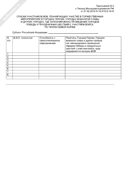 - 1061Списки участников ВОВ, планирующих участие в торжественных мероприятиях в городах-героях, городах воинской славы и других городах, где запланировано проведение парадов победы и праздничных шествий с участием войск, по прилагаемой форме