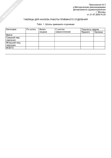 - 1080Таблицы для анализа работы приемного отделения. Штаты приемного отделения