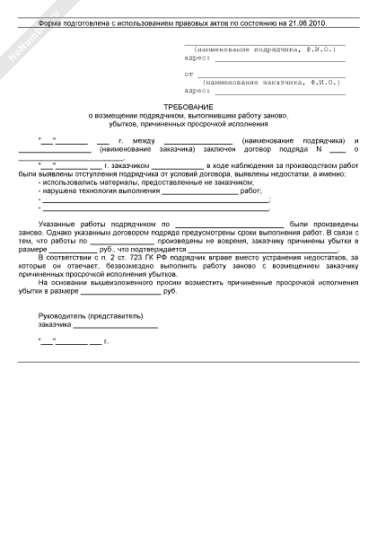 - 1208Требование заказчика о возмещении подрядчиком, выполнившим работу заново, убытков, причиненных просрочкой исполнения