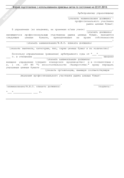 - 1243Требование клиента в отношении возврата принадлежащих ему ценных бумаг, находящихся в распоряжении профессионального участника рынка ценных бумаг, в отношении которого введено внешнее управление или конкурсное производство