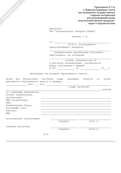 - 1253Требование на возврат гарантийного взноса, внесенного для участия в Биржевых торгах при проведении государственных товарных интервенций для регулирования рынка сельскохозяйственной продукции, сырья и продовольствия на ЗАО «Национальная товарная биржа»