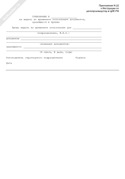 - 1252Требование на выдачу во временное пользование документов, хранящихся в Архиве Аппарата Центральной избирательной комиссии Российской Федерации