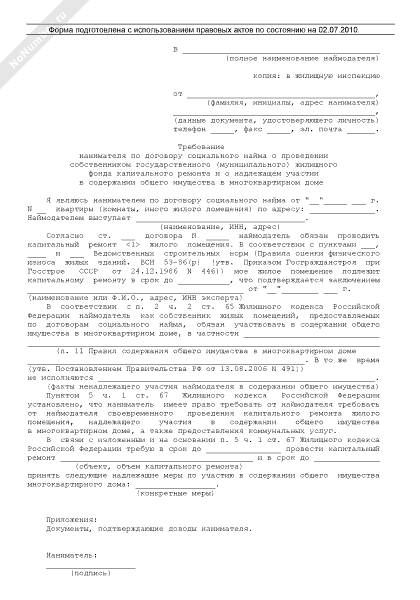 - 1258Требование нанимателя по договору социального найма о проведении собственником государственного (муниципального) жилищного фонда капитального ремонта и о надлежащем участии в содержании общего имущества в многоквартирном доме