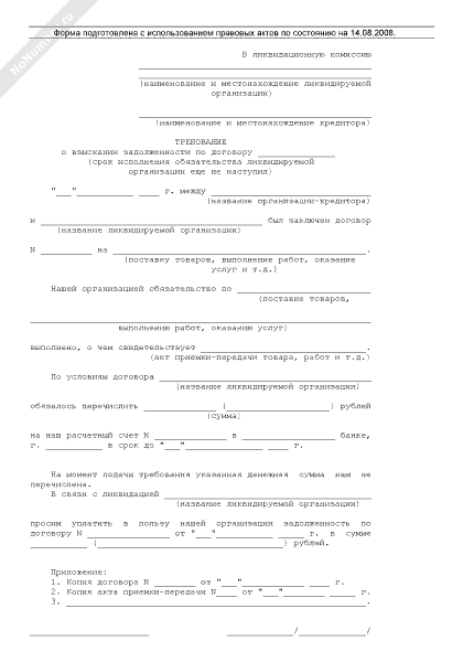 - 1260Требование о взыскании задолженности по договору (срок исполнения обязательства ликвидируемой организации еще не наступил)