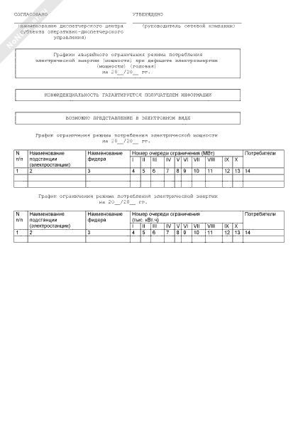 - 139Графики аварийного ограничения режима потребления электрической энергии (мощности) при дефиците электроэнергии (мощности) (годовая форма)