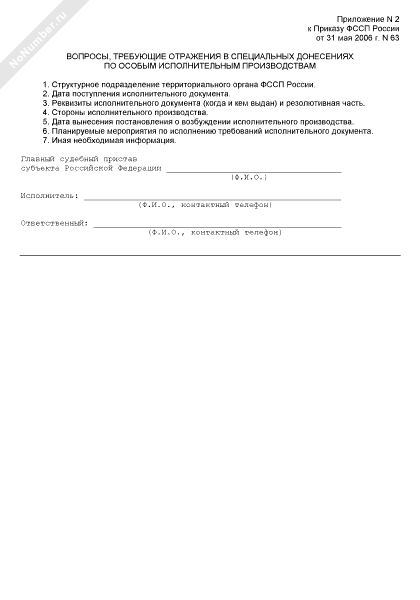 - 121Вопросы, требующие отражения в специальных донесениях по особым исполнительным производствам в Федеральной службе судебных приставов