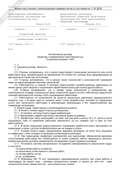 - 125Выдержки из проекта коллективного договора общества с ограниченной ответственностью — страховой компании