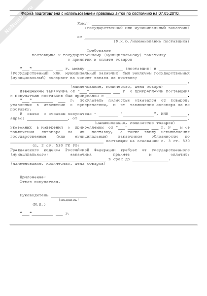 - 1410Требование поставщика к государственному (муниципальному) заказчику о принятии и оплате товаров