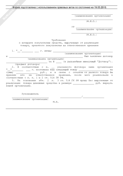 - 1404Требование поставщика о возврате покупателем средств, вырученных от реализации товара, принятого покупателем на ответственное хранение