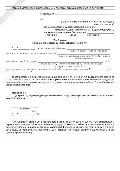 - 1413Требование потерпевшего или страхователя о выдаче страховщиком копии страхового акта