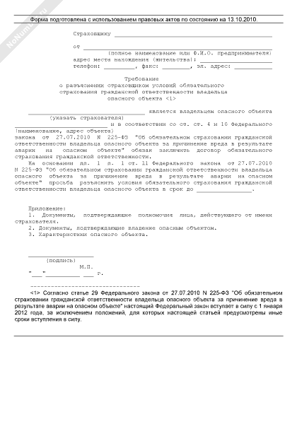 - 1448Требование страхователя о разъяснении страховщиком условий обязательного страхования гражданской ответственности владельца опасного объекта