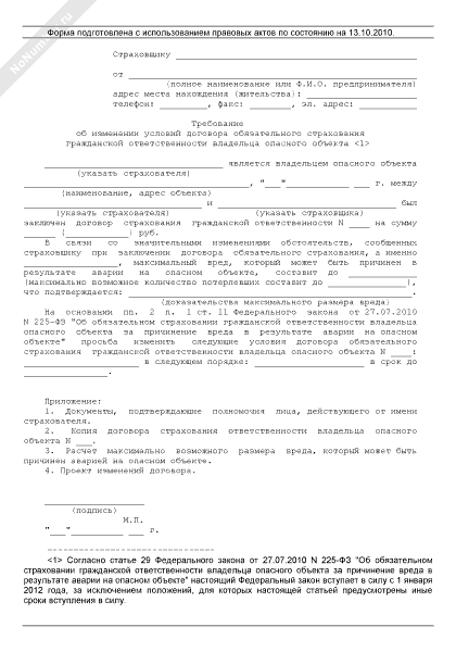 - 1449Требование страхователя об изменении условий договора обязательного страхования гражданской ответственности владельца опасного объекта