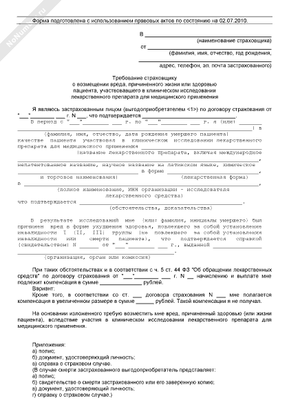 - 1447Требование страховщику о возмещении вреда, причиненного жизни или здоровью пациента, участвовавшего в клиническом исследовании лекарственного препарата для медицинского применения