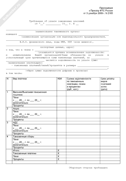 - 1457Требование таможенного органа организации (индивидуальному предпринимателю, физическому лицу) об уплате таможенных платежей