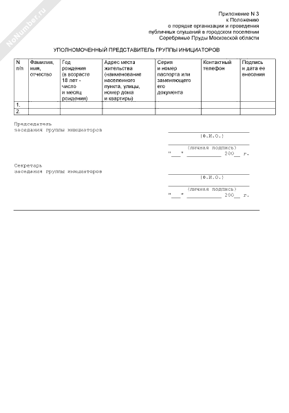 - 1485Уполномоченный представитель группы инициаторов проведения публичных слушаний в городском поселении Серебряные Пруды Московской области