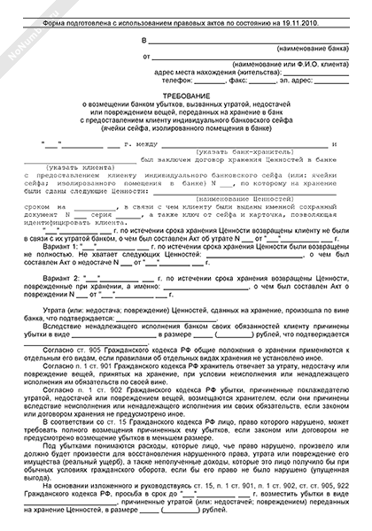 - 1741Требование клиента о возмещении банком убытков, вызванных утратой, недостачей или повреждением вещей, переданных на хранение в банк с предоставлением клиенту индивидуального банковского сейфа (ячейки сейфа, изолированного помещения в банке)