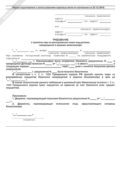 - 1755Требование комиссионера о принятии комитентом мер по распоряжению своим имуществом, находящимся в ведении комиссионера