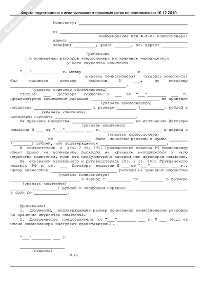 - 1752Требование комиссионера о возмещении расходов на хранение находящегося у него имущества комитента (данное право комиссионера предусмотрено договором)