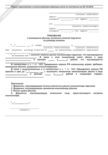 - 1753Требование комиссионера о возмещении убытков, вызванных отменой поручения по договору комиссии