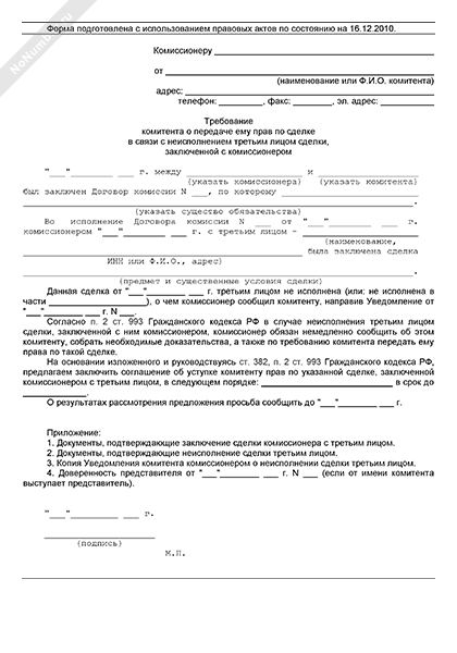 - 1746Требование комитента о передаче ему прав по сделке в связи с неисполнением третьим лицом сделки, заключенной с комиссионером