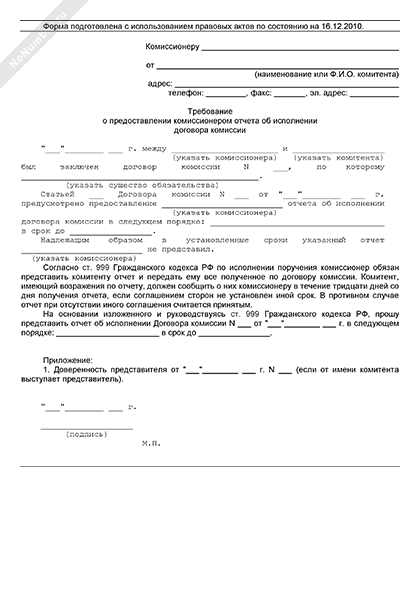 - 1751Требование комитента о предоставлении комиссионером отчета об исполнении договора комиссии