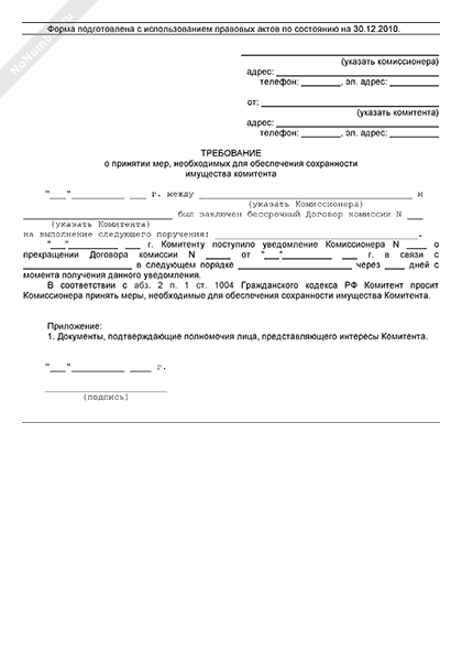 - 1756Требование комитента о принятии комиссионером мер, необходимых для обеспечения сохранности имущества комитента
