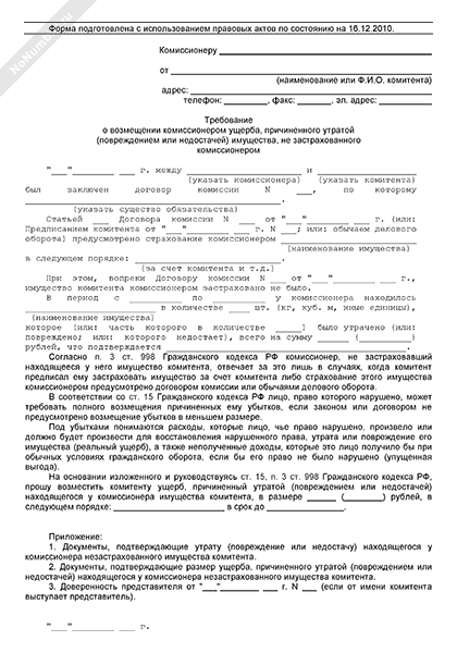 - 1749Требование комитента о возмещении комиссионером ущерба, причиненного утратой (повреждением или недостачей) имущества, не застрахованного комиссионером