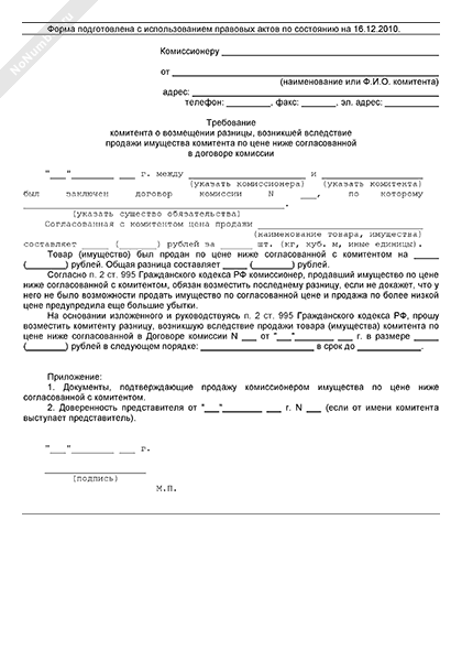 - 1747Требование комитента о возмещении разницы, возникшей вследствие продажи имущества комитента по цене ниже согласованной в договоре комиссии