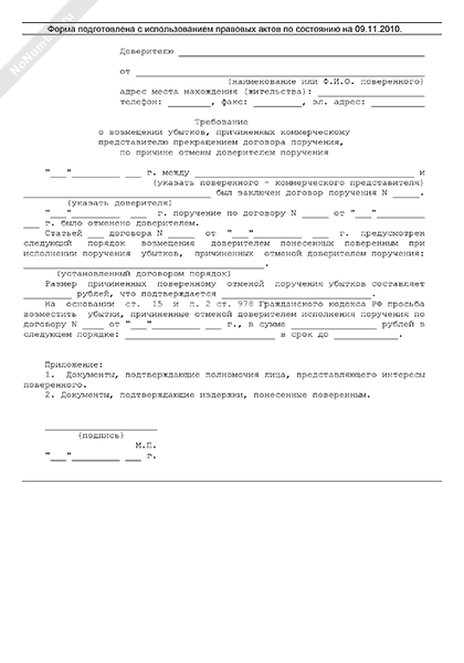 - 1757Требование коммерческого представителя о возмещении убытков, причиненных ему прекращением договора поручения по причине отмены доверителем поручения