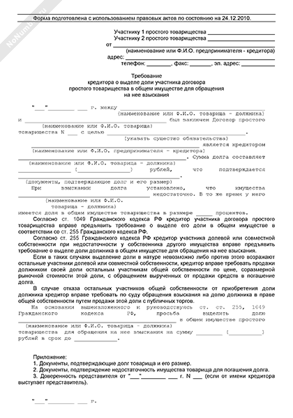 - 1758Требование кредитора о выделе доли участника договора простого товарищества в общем имуществе для обращения на нее взыскания