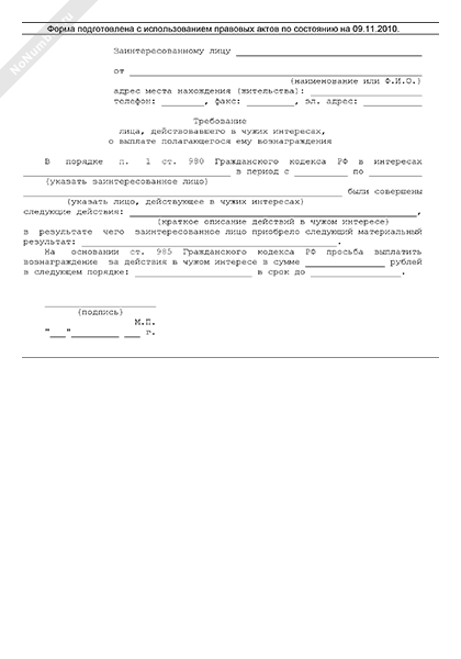 - 1759Требование лица, действовавшего в чужих интересах, о выплате полагающегося ему вознаграждения