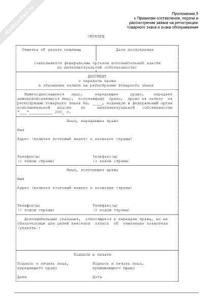 - 162Документ о передаче права в отношении заявки на регистрацию товарного знака