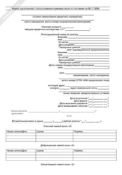 - 166Документ, подтверждающий членство пайщика в кредитном кооперативе (членская книжка)